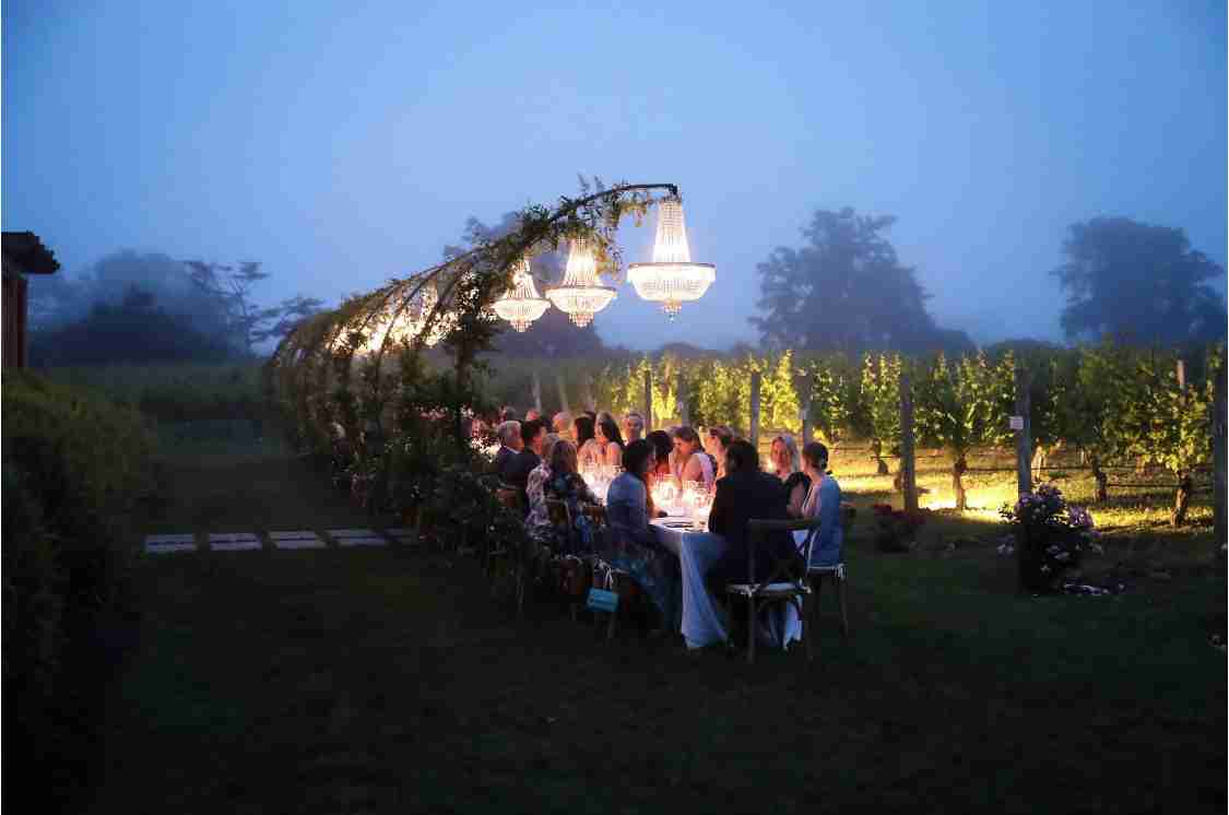 Award winning Hamptons winery, Wölffer Estate, celebrated its 35th Anniversary in the vineyard with a dinner under the stars. Owners and hosts Joey Wölffer, Marc Wölffer, and Roman Roth created a magical evening with wine in the tasting room and dinner on the vineyard lawn, followed by dancing in the wine cellar with music by DJ Tokyo Rose.