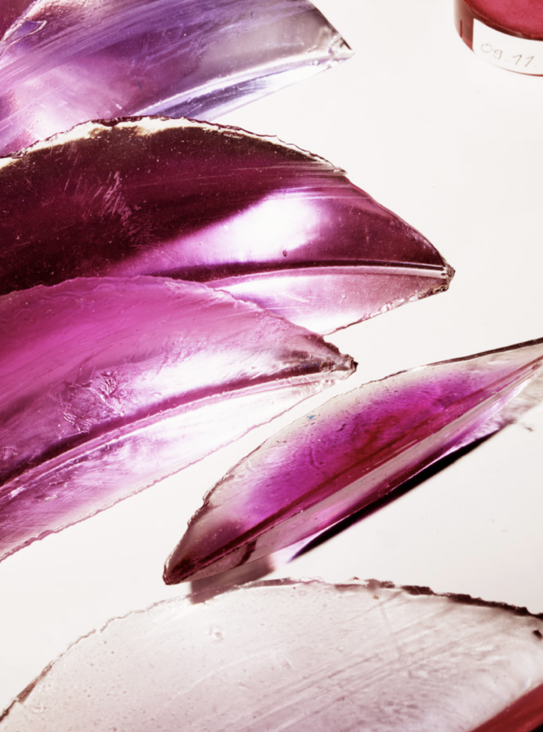 As an artist, Eversley is old school. Any other with as many overlapping projects as he has today would hire teams of assistants. He has only one, Maria Larsson, the 52-year-old Swedish-born artist and architect he married nearly 10 years ago in New York, where he relocated after gentrification in Venice Beach forced him out. Larsson took me through his Geppetto-like basement workshop, where his turntable and other machinery share space with a plethora of tools and dyes, lenses in various states of production, and the “recipe” book of minute mathematical calculations by which Eversley determines the shape, size, color, and dynamics of each work.