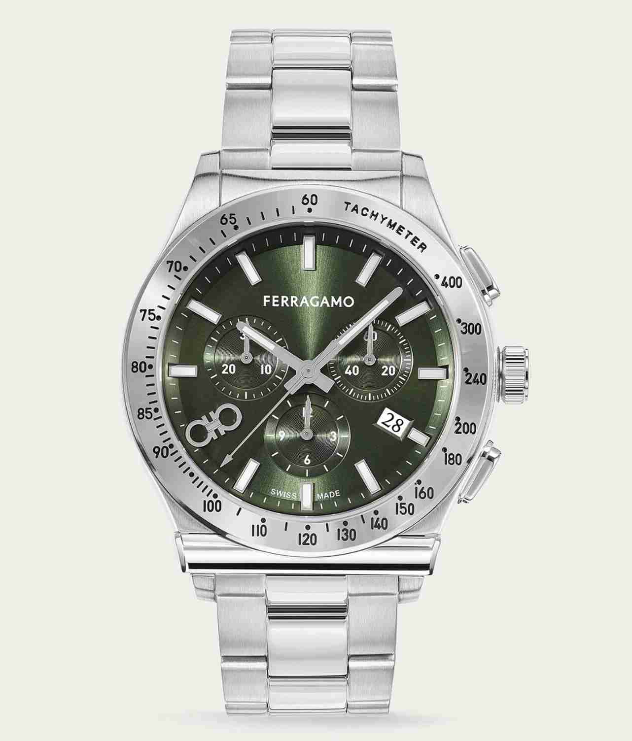 Stainless steel “1927 Chrono” watch. $1,295; ferragamo.com.