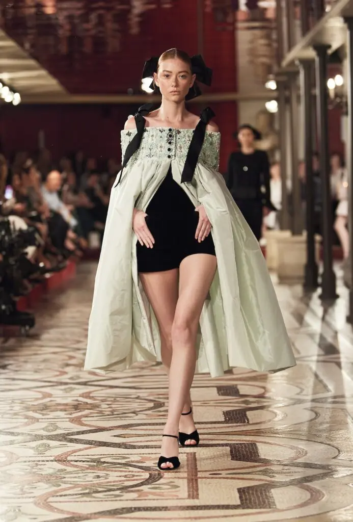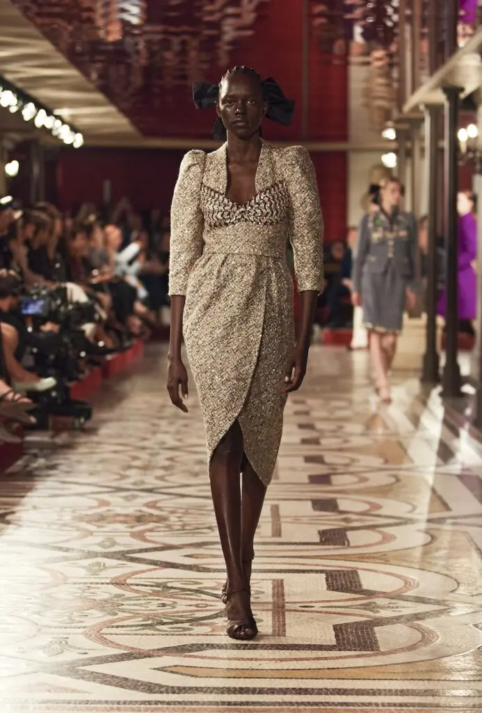It turns out, rather similar. Chanel’s house codes (the aesthetics and design elements that are key to the brand) are so well defined that it’s easy to experiment without straying from the norm. That said, there were some subtle shifts in direction. Under Viard, ensembles skewed in a youthful direction that often felt incongruous with the fabric and level of craftsmanship the house is known for. This season, Chanel’s iconic tweed suits felt more ageless—and timeless—than they have in years. The collection, which was a tribute to the Palais Garnier in Paris, featured opulent embellishments such as embroidered flowers, feathers, tassels, and beads. The silhouettes were a strong point, with voluminous capes, shoulders, and skirts being used to create intrigue.