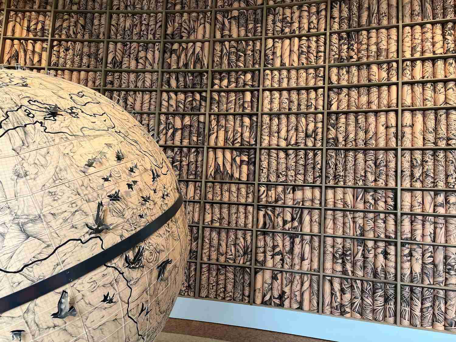 Pietro Ruffo’s paper rolls and massive globe at the Venice pavilion.