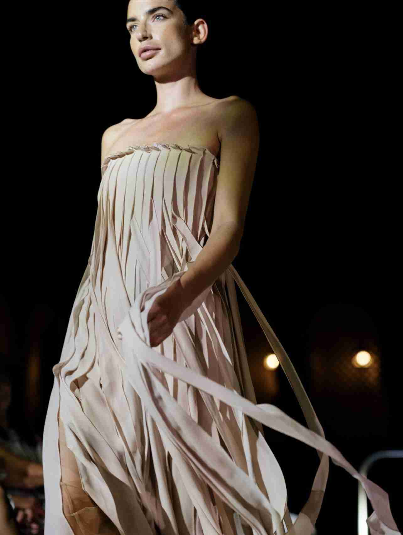 The fashion presentation featured highlights from Akris’ Cruise and Spring/Summer 2025 collections. Models circled the Spa Palmera’s beautifully lighted pool in rich metallic evening suits, classic crepe tailoring, techy sportswear and novelty dresses made of embroidered tulle. The final piece, a bronze sequined evening dress, drew gasps from the crowd as it glinted against the backdrop of the night sky — a perfect choice for New Year’s Eve.