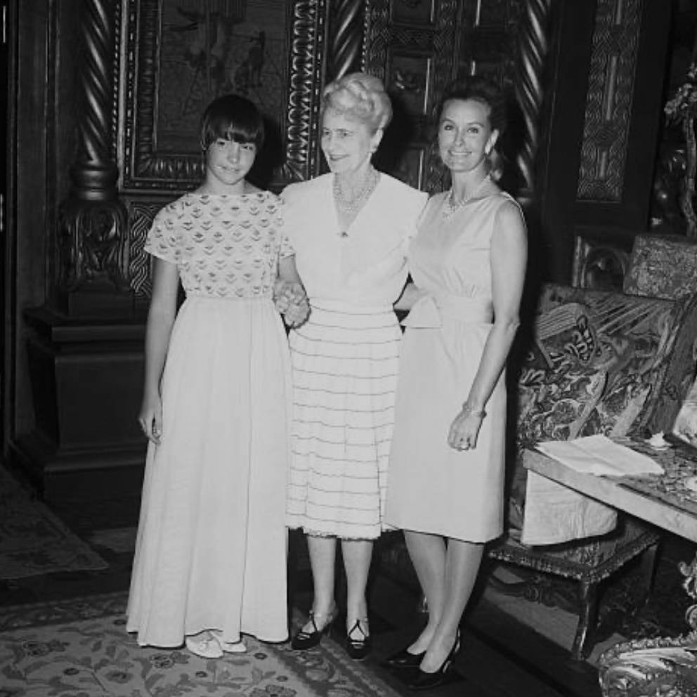 Marjorie Merriweather Post with daughter Dina Merrill and granddaughter Nedena Rumbough, at Mar-a-Lago, photographed by Bert Morgan, Palm Beach, 1964.