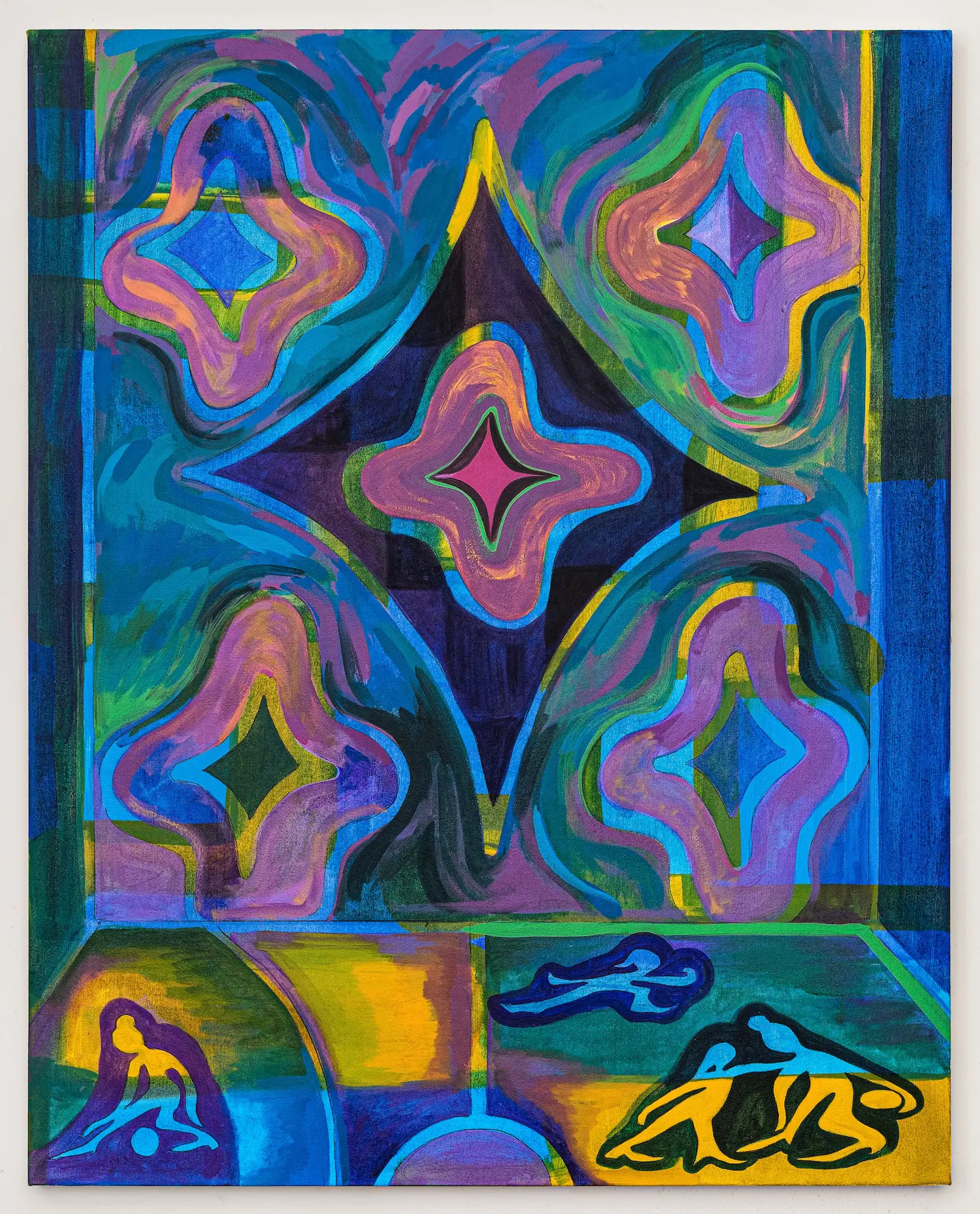 Art Basel Miami Beach’s younger sister, NADA Miami, is always the place to spot rising talent, and this year one of the standout presentations comes from Chozick Family Art Gallery, debuting with a solo booth by New York-based artist Andrea Bergart. Known for blending painting, sculpture, fashion, and public projects, Bergart draws deeply from basketball culture, a lifelong passion and a shared cultural language that runs through her work. Featuring new works inspired by the geometry of courts, the pace of play, and the style of women athletes, the presentation also includes a polished steel basketball-rack sculpture topped with her signature bags made from vintage balls.