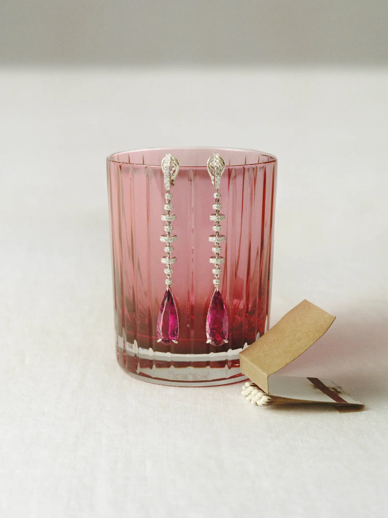 HIGH JEWELRY BLAZING SKY EARRINGS WITH PINKISH-RED SPINELS PIAGET SET DESIGNER’S OWN GLASS AND SAUCER