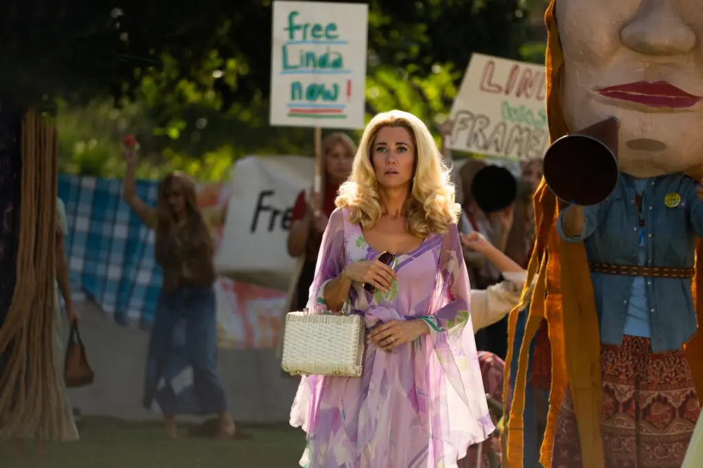 The show includes original pieces by Halston, Oscar de la Renta, Bill Blass, and Oleg Cassini. One standout is Evelyn’s emerald green Halston jersey dress, worn by Allison Janney, which hints at the softer, more fluid silhouettes of the coming 1970s. Dinah appears in several Oscar de la Renta designs that feel perfectly aligned with her social position and evolving confidence. Throughout the season, Lilly Pulitzer and Pucci-style prints, graphic black-and-white looks, kaftans, minis, and shift dresses anchor the series firmly in the late 1960s.