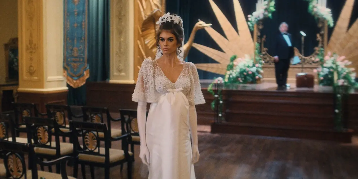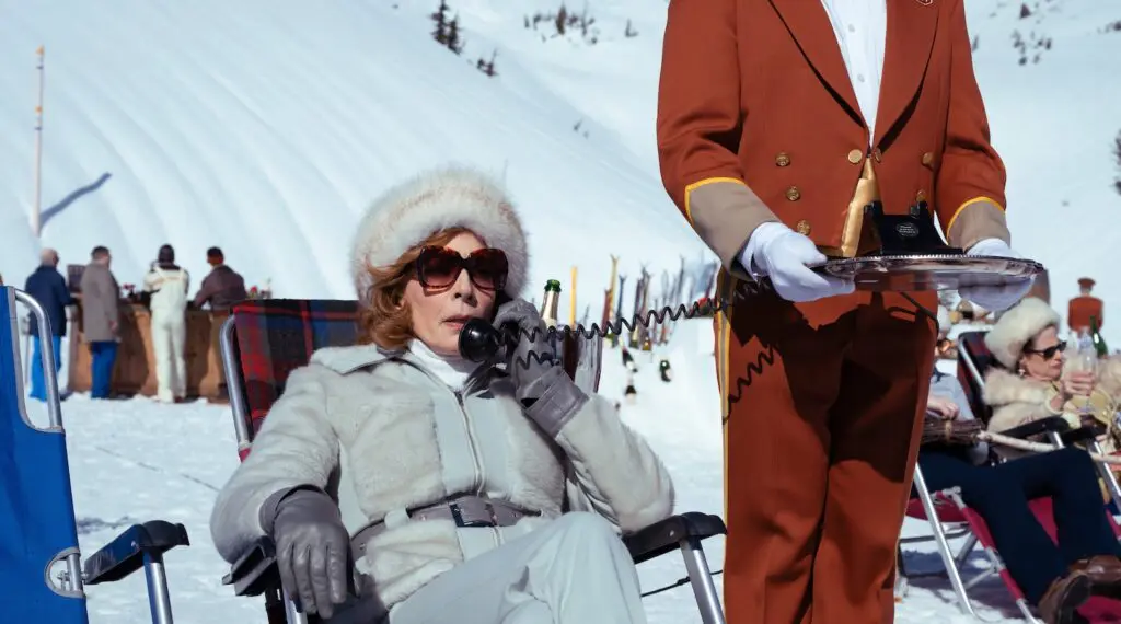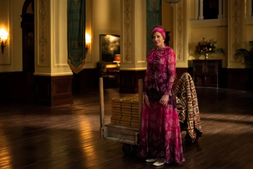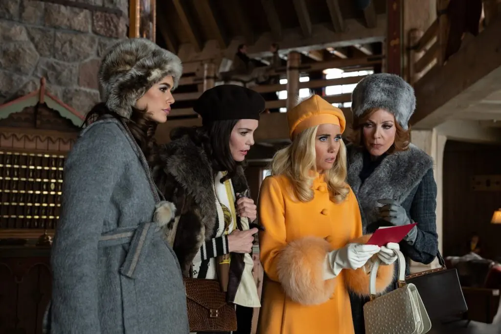 From the opening scenes, the costumes make themselves known. Bright color, bold prints, dramatic silhouettes, and unmistakable vintage pieces move through every episode, capturing both the excess of the era and the ambitions of the women wearing them. This season, Maxine (played by the brilliant Kristen Wiig) dresses for reinvention as she pushes further into high society, her wardrobe sharpening over time with more trousers, cleaner tailoring, and a growing sense of control that mirrors her increasing self-assurance.