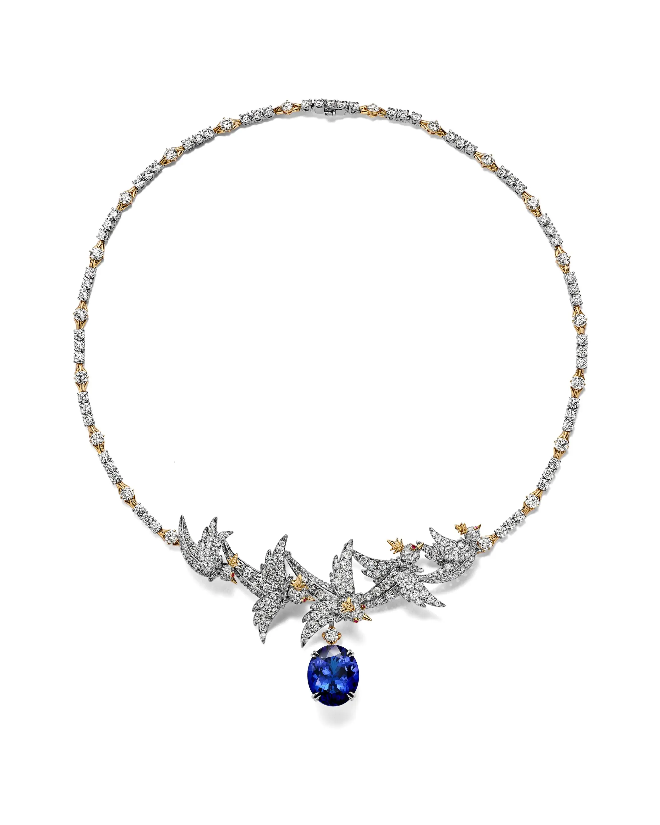 Tanzanite Bird on a Rock Necklace: $415,000 USD. Available at Tiffany & Co., 259 Worth Ave, Palm Beach.
